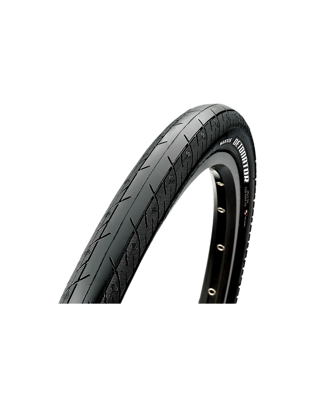 Abdeckung Maxxis Detonator Road 700x32C Wide. Hochwertiger Rennreifen mit "Grooved Slick"-Zeichnung und Dual Compound-Siliziumdioxid-Zeichnung mit geringem Rollwiderstand, sehr langer Laufleistung und gutem Grip in Kurven.