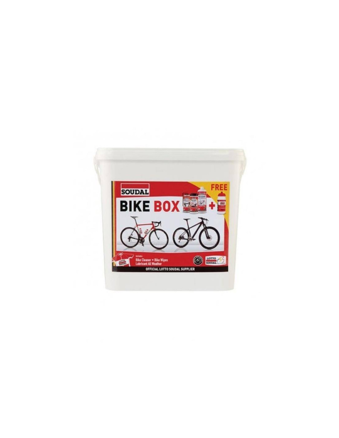 Kit Soudal(Limpiabicis,Spray 4Estaciones,Toalla,Bidon), detergente para la limpieza de la bicicleta para eliminar todo tipo de suciedad como barro, además incluye lubricante profesional para piezas móviles tales como cadenas, desviadores, cables y toallitas de bicicleta Soudal, especialmente diseñadas para eliminar de forma rápida y eficaz la suciedad en la bicicleta y en las manos. Incluye bidón.