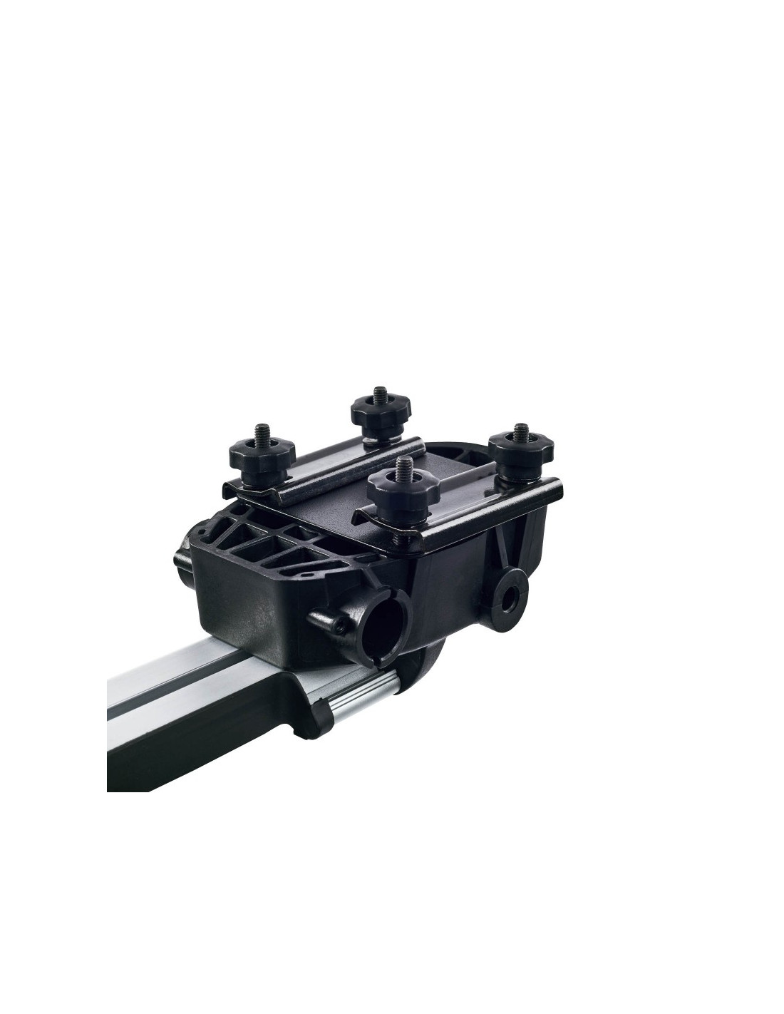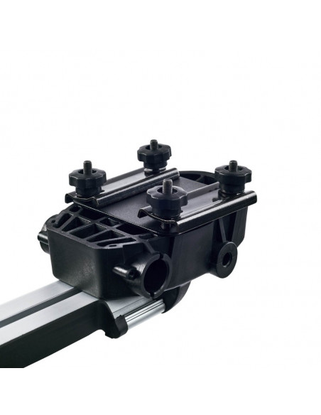 Incluye adaptadores de montaje tanto para barras de aluminio sobre carril T como para barras de acero, asegurando una compatibilidad óptima con cualquier tipo de barras CRUZ.