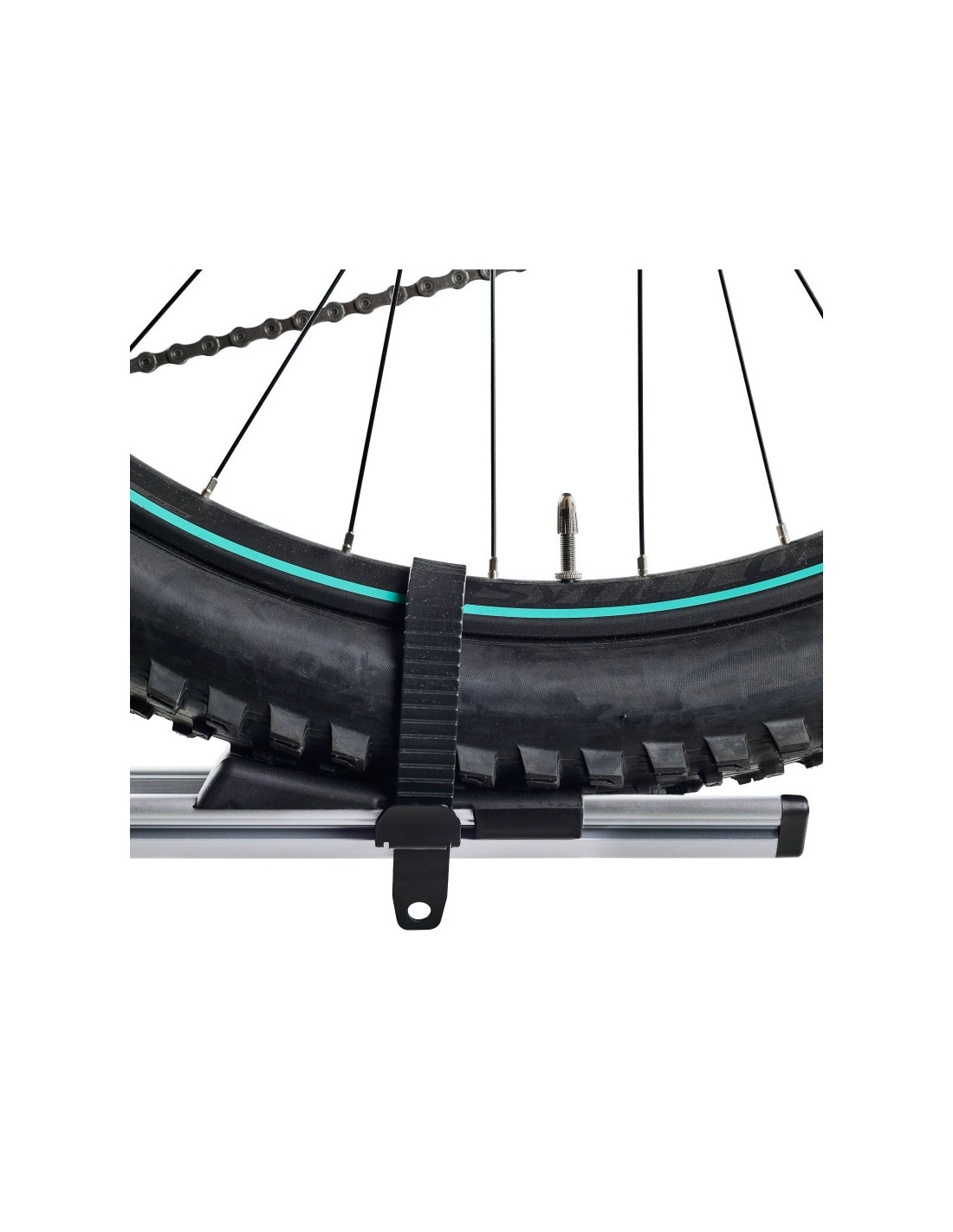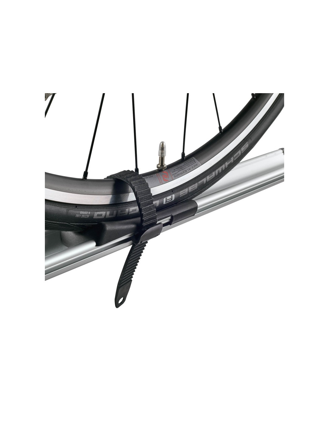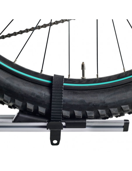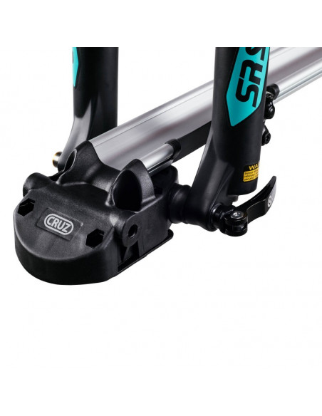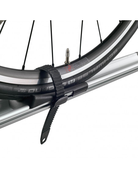 Equipado con una correa con cierre rápido para la fijación de la rueda trasera, el Portabicicletas CRUZ Criterium asegura una sujeción firme y segura durante el transporte.