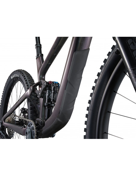 Triángulos delantero y trasero en Advanced-Grade Composite, suspensión Maestro de 140 mm, eje pasante de 12x148 mm, compatible con ruedas traseras de 27,5 o 29 pulgadas, flip-chip Maestro de 3 posiciones, flip-chip en el juego de dirección, almacenamiento integrado en el tubo diagonal y soportes bajo el tubo superior.