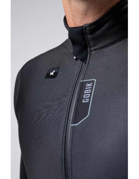La Gobik Skimo Pro Ink Black es uno de los modelos más demandados por ciclistas que entrenan en temperaturas frías. Se trata de una prenda superventas diseñada para ofrecer confort térmico, aerodinámica y espacio suficiente para combinar con capas interiores en condiciones extremas.