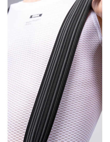 Confeccionado en tejido de lycra plana 4-Way Stretch, proporciona una compresión muscular elevada y una adaptación total al cuerpo del ciclista.