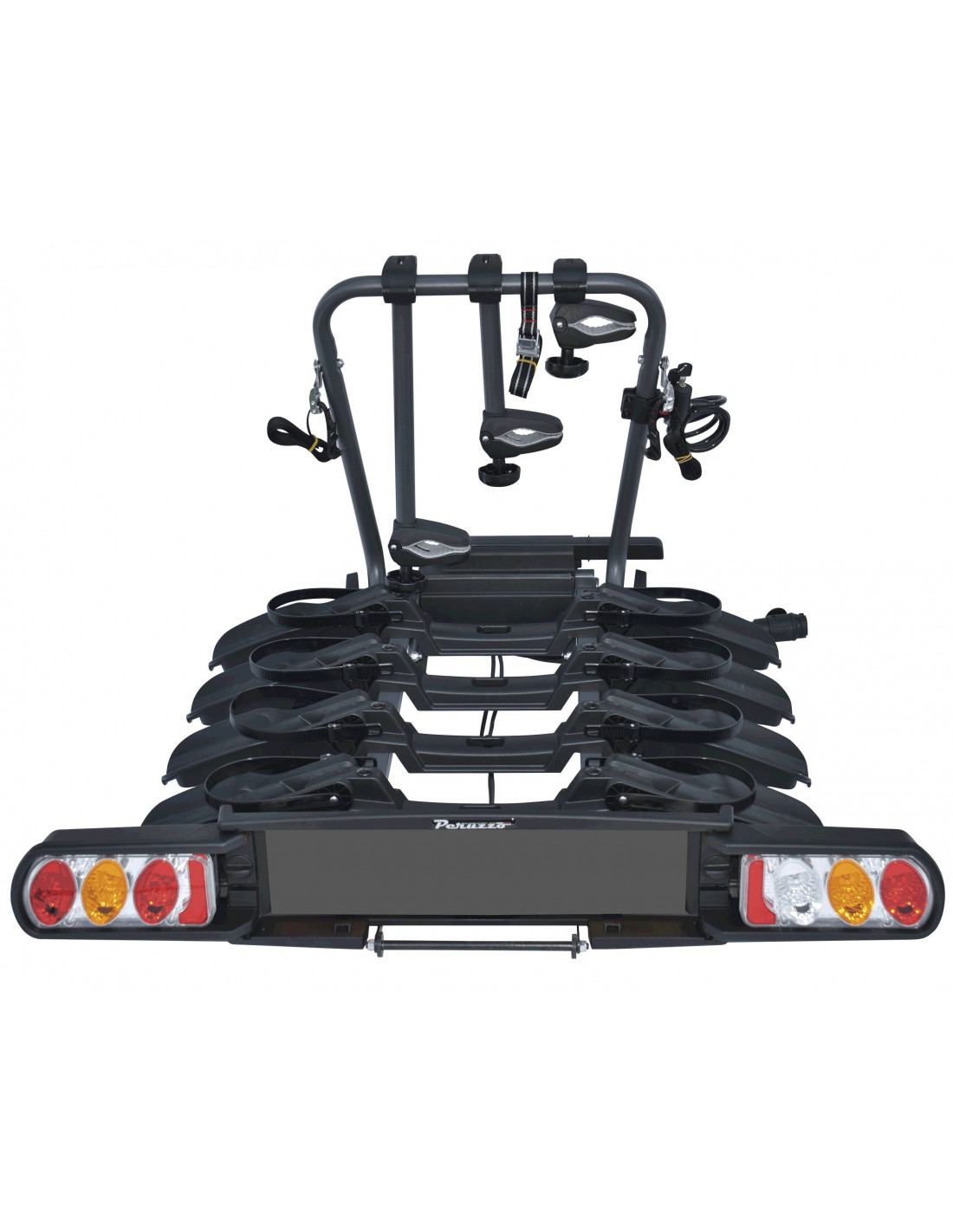 Le support à vélos PERUZZO pure instinct 4 Bikes ball,est extrêmement robuste, capable de transporter jusqu’à 4 vélos ou jusqu’à 2 vélos de 30 kg. Il a une pédale qui le rend facile pour la charge d’inclinaison nous permettant d’accéder au coffre, même avec les vélos chargés, a bras de poignée pour les 4 vélos et la serrure de sécurité. Le support à vélos Pure Instinc de 4 Peruzzo est équipé de feux arrière approuvés par connexion à 13 pôles et convient à la fois aux vélos de route et de VTT.