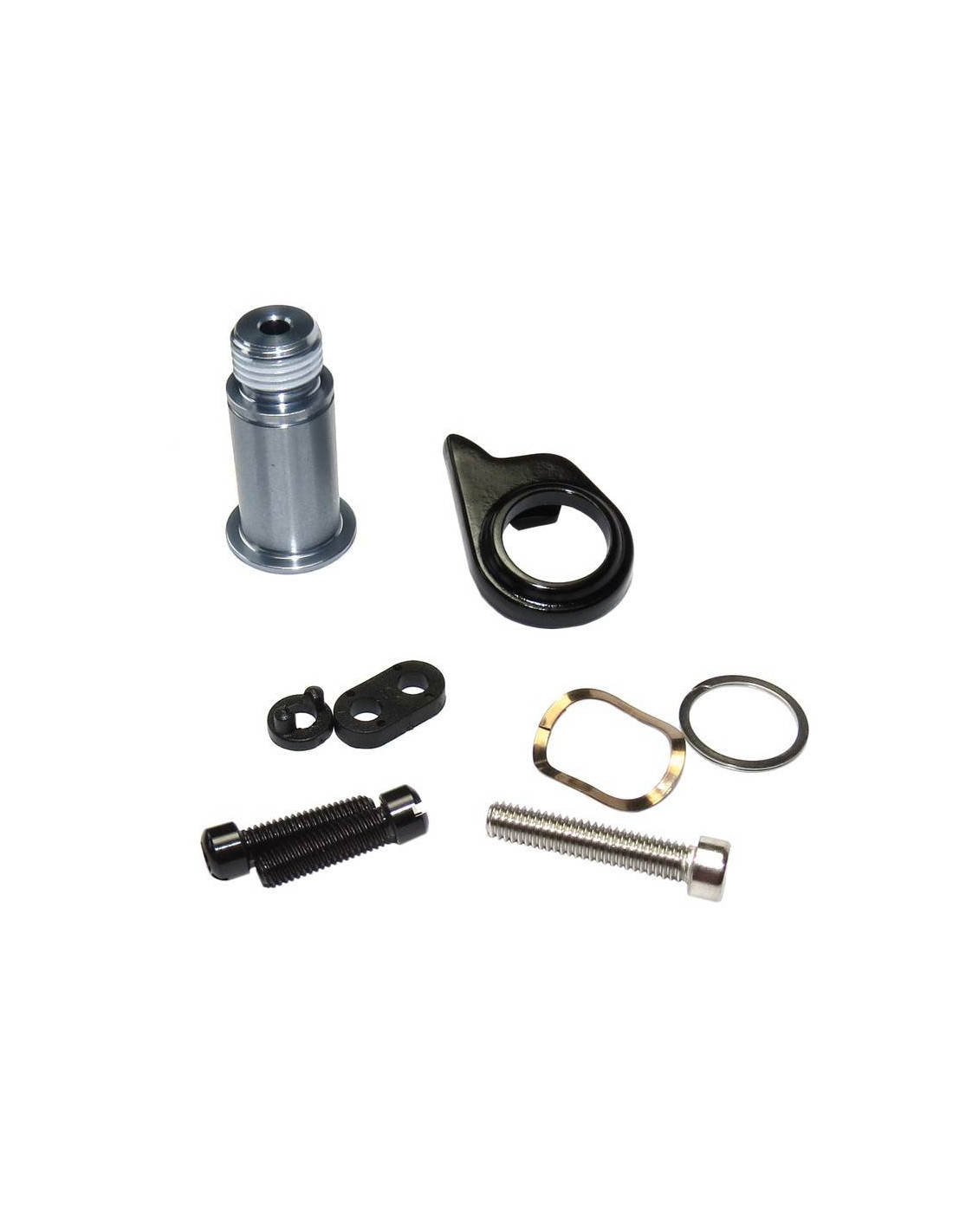 Il kit di montaggio per SRAM deragliatori include il bullone del deragliatore posteriore, due viti necessarie per regolare la parte superiore e inferiore del deragliatore posteriore e una vite posteriore per regolare l'arresto della testa.