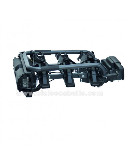 Questo modello, posto sul traino, è dotato di un sistema di accoppiamento e disaccoppiamento molto compatto e funzionale. C'è anche un sistema antifurto tra le biciclette e l'auto.