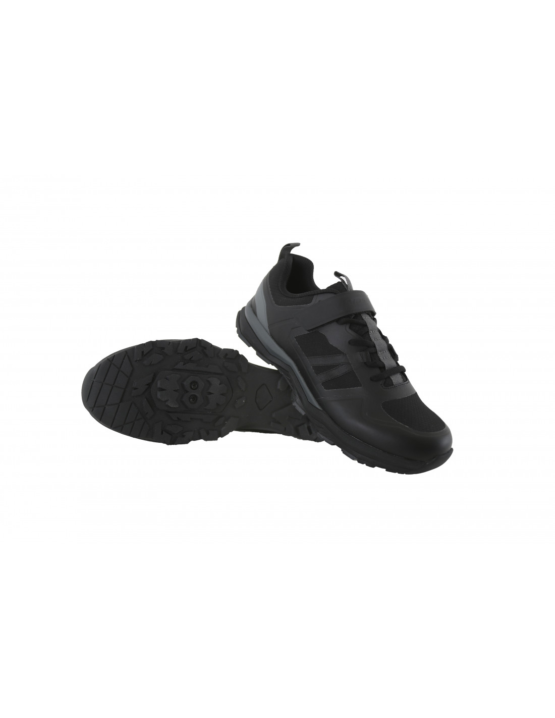 Con sistema de cordones combinado con banda de velcro y suela compuesta de goma combinada con nailon que brinda eficiencia al pedalear y comodidad al caminar.