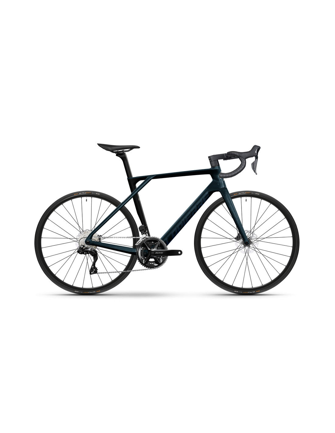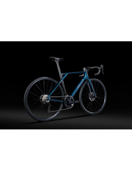 Com transmissão Shimano 105 de 12 velocidades, pedaleiro 50/34 e cassete 11-34, adapta-se a qualquer percurso.